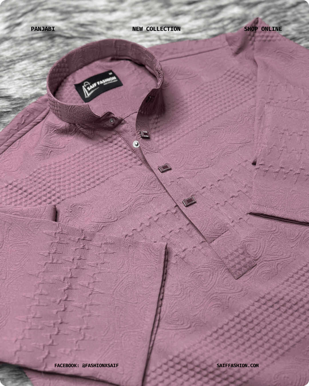 2. Premium Men’s Panjabi – Woven Design – Dusty Rose