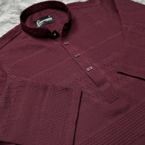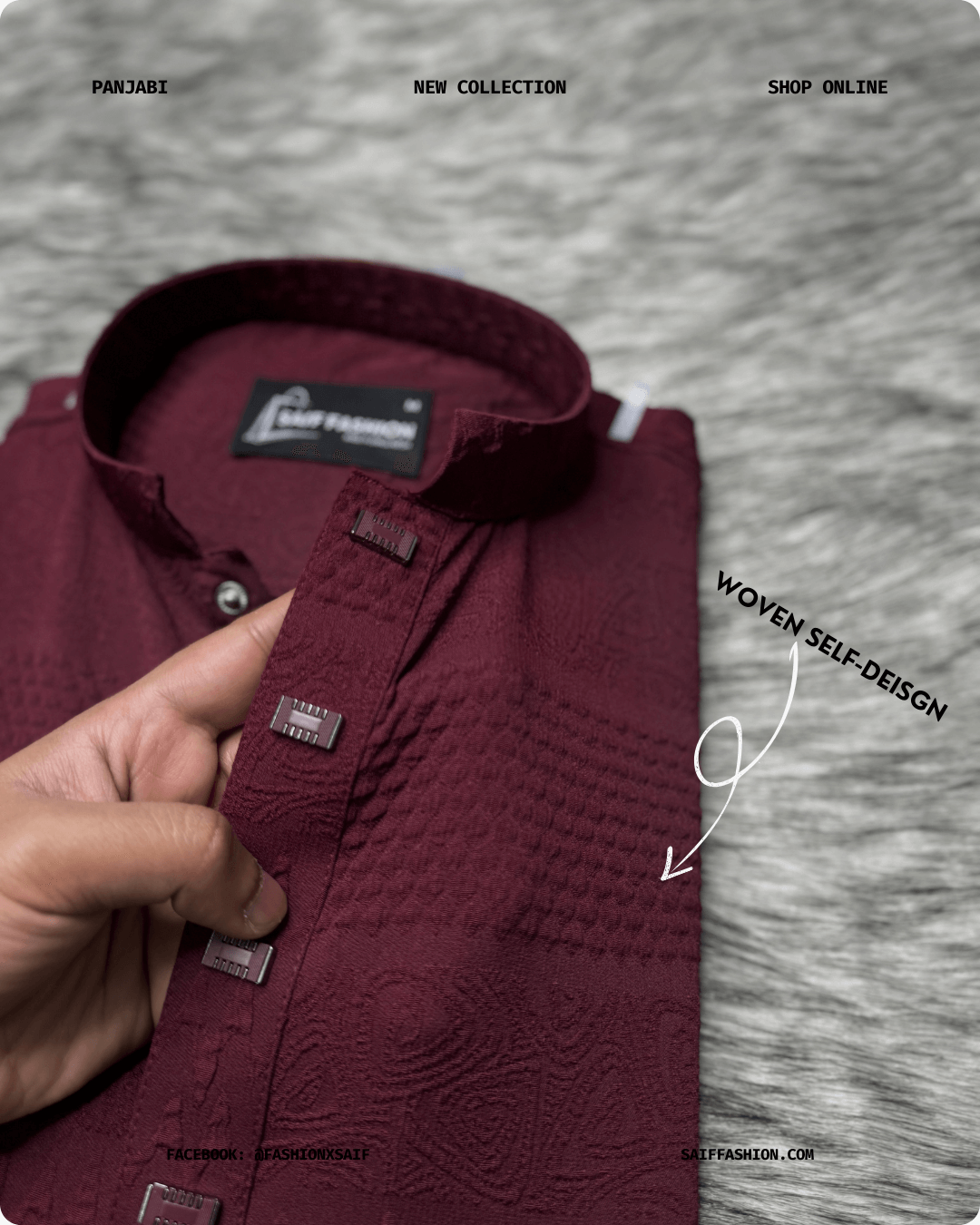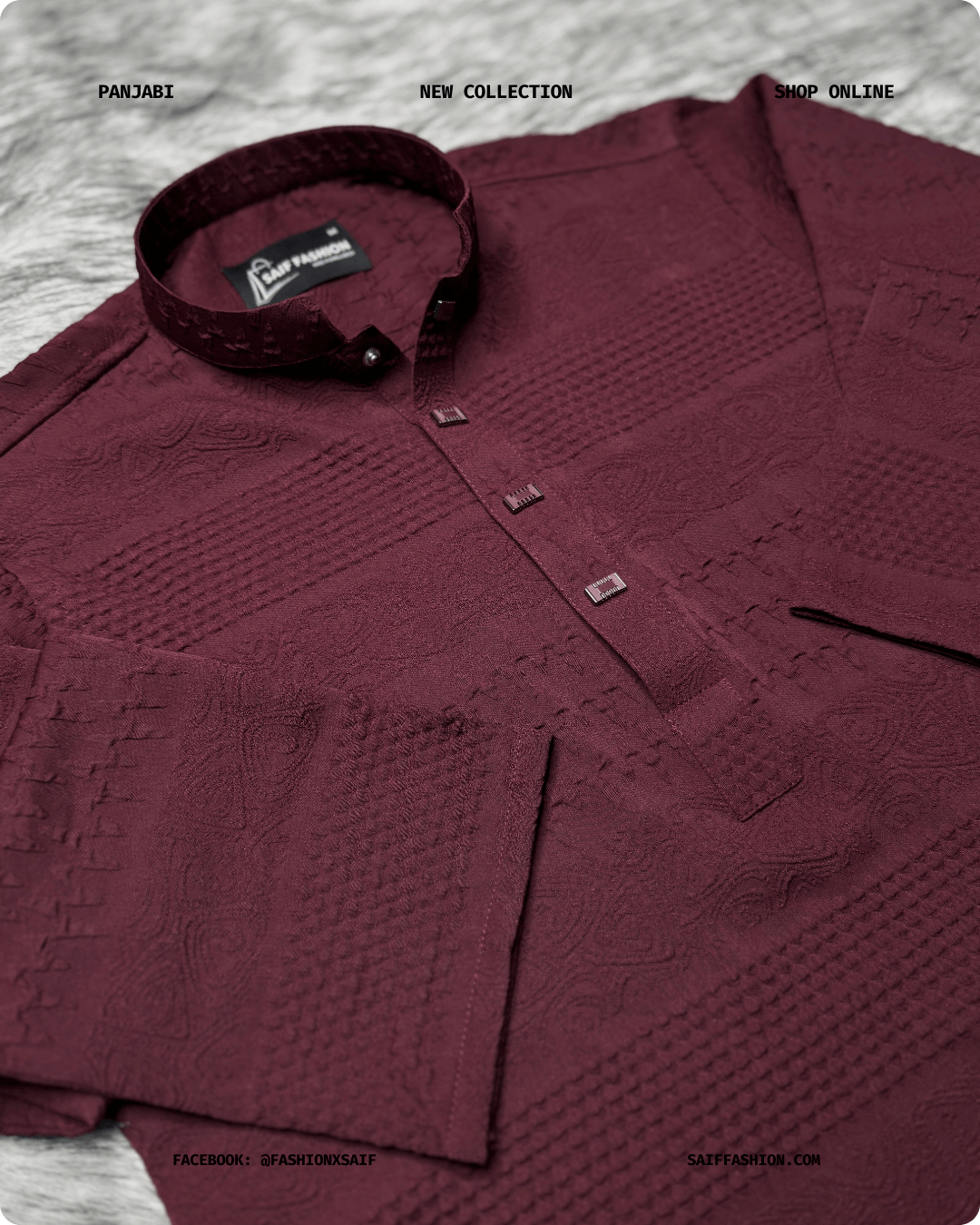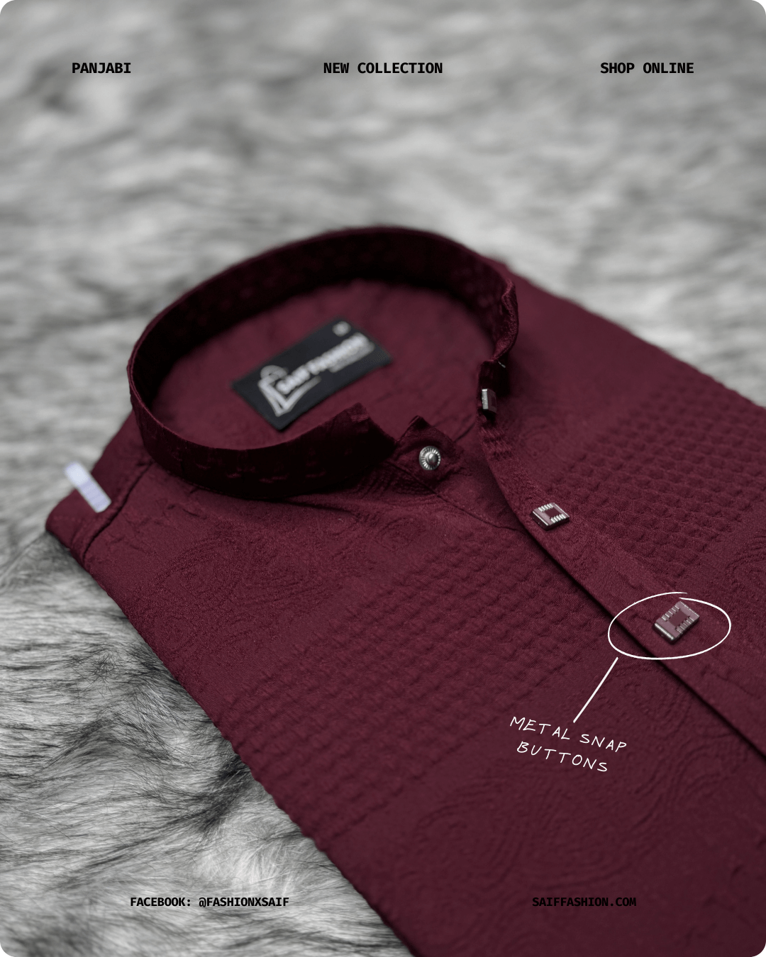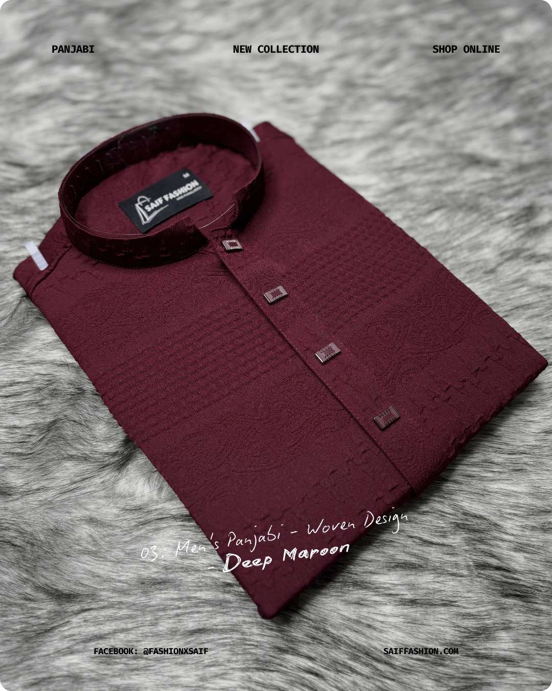 3. Premium Men's Panjabi - Woven Design - Deep Maroon3. Premium Men’s Panjabi – Woven Design – Deep Maroon