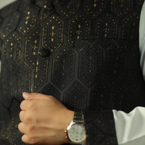 • Waistcoat Fabric: Premium Imported Katan for a rich, textured look.