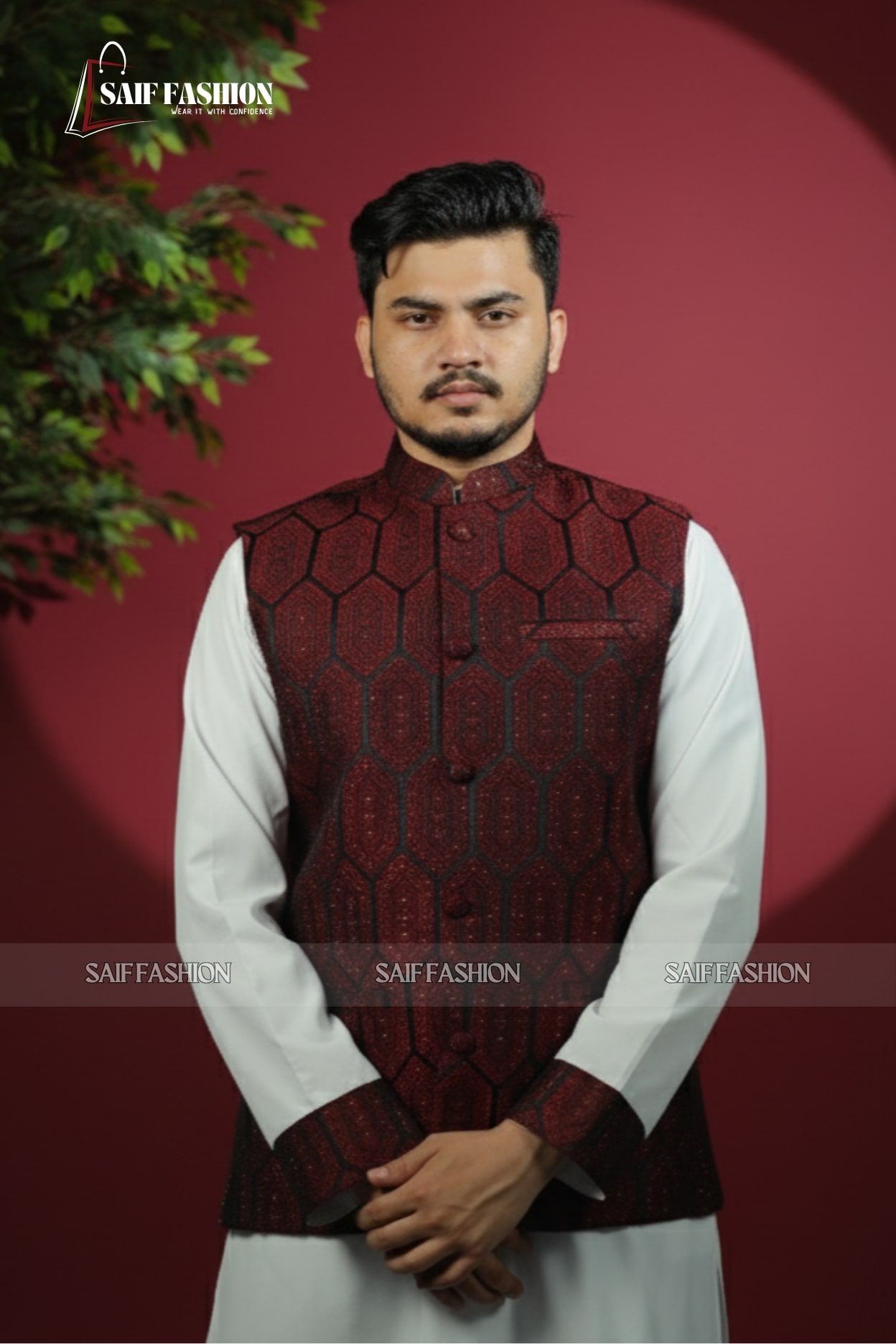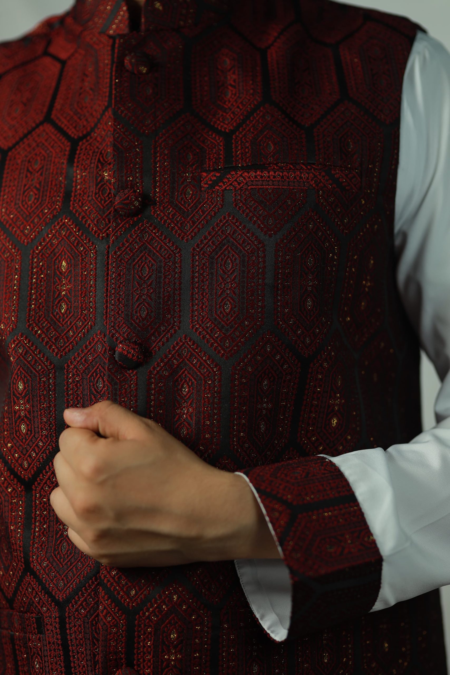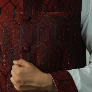 • Waistcoat Fabric: Premium Imported Katan for a rich, textured look.