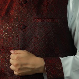 • Waistcoat Fabric: Premium Imported Katan for a rich, textured look.