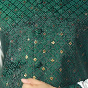 • Waistcoat Fabric: Premium Imported Katan for a rich, textured look.