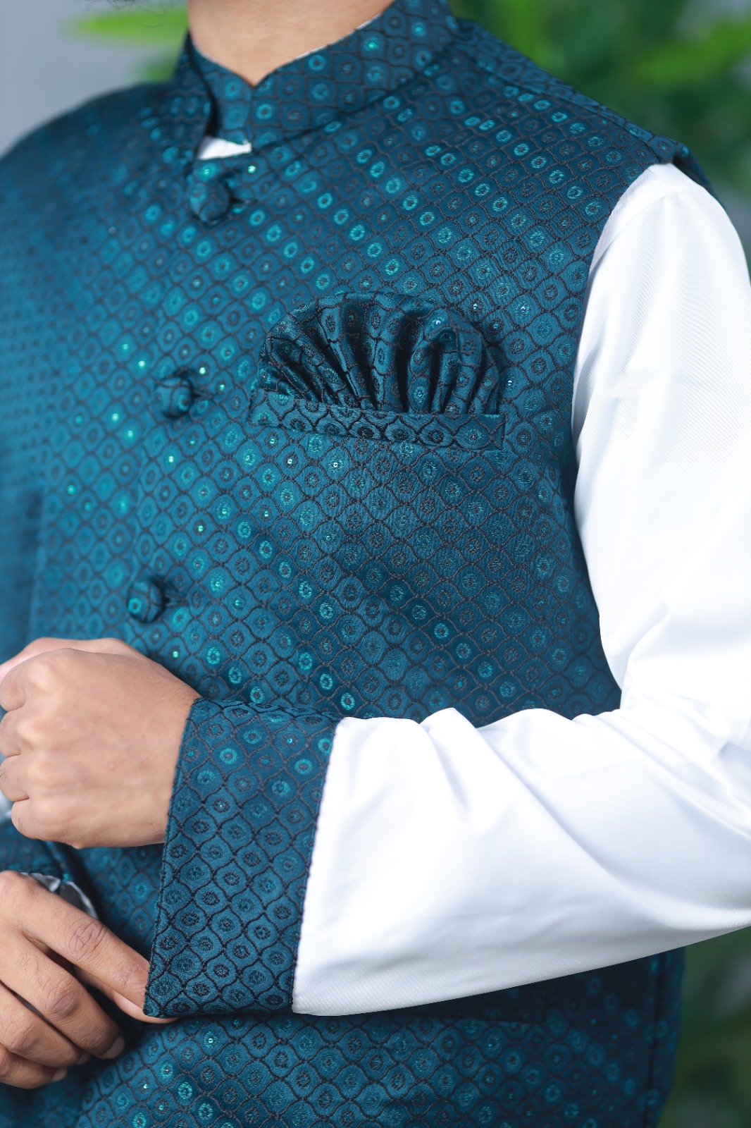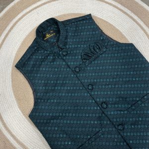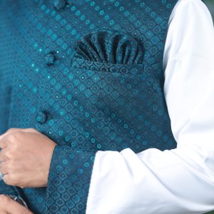 • Waistcoat Fabric: Premium VIP Sherwani Katan for a rich, textured look.